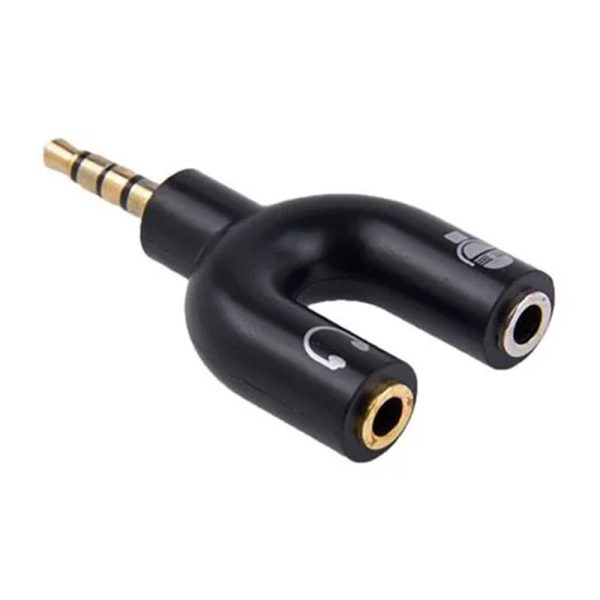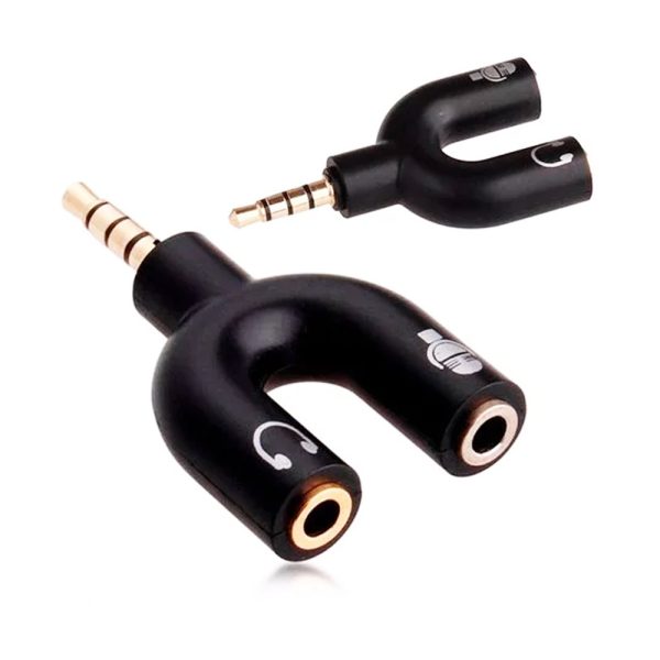 Con un conector macho de 3.5mm que se divide en dos conectores hembra (una para audífono y otra para micrófono), este adaptador permite la conexión simultánea de ambos dispositivos en una única entrada.