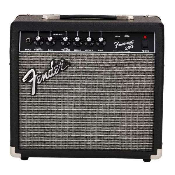 El 20G presenta un diseño simple e intuitivo que cualquiera, desde principiantes hasta profesionales, entenderá de inmediato. Incluye un canal limpio con volumen y tres perillas de ecualización para flexibilidad sónica, además de un canal Drive conmutable separado con su propio volumen. También viene con entrada auxiliar de 1/8” para tocar junto con tus canciones favoritas y un conector para auriculares para practicar en silencio. El Frontman también emite 20 vatios en un altavoz de diseño especial de 8” que ofrece excelentes tonos cuando practicas o juegas con amigos