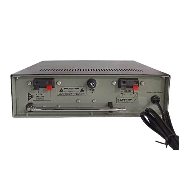 El amplificador England Sound PM450USB es una solución versátil y potente con una potencia de salida de 20 Watts RMS y 45 Watts máximo. Ofrece múltiples opciones de conectividad, incluyendo entradas para micrófonos y AUX/MP3, y un reproductor MP3 con puerto USB, tarjeta SD y radio FM. Además, cuenta con un sistema Bluetooth incorporado para una conectividad inalámbrica fácil. Alimentado por 110V AC o 12V DC, este amplificador es ideal para diversas aplicaciones. Su diseño incluye protección eléctrica con un fusible de 2A y un switch de encendido/apagado, operando en un rango de impedancia de 8 a 16 ohms, garantizando un rendimiento fiable y flexible