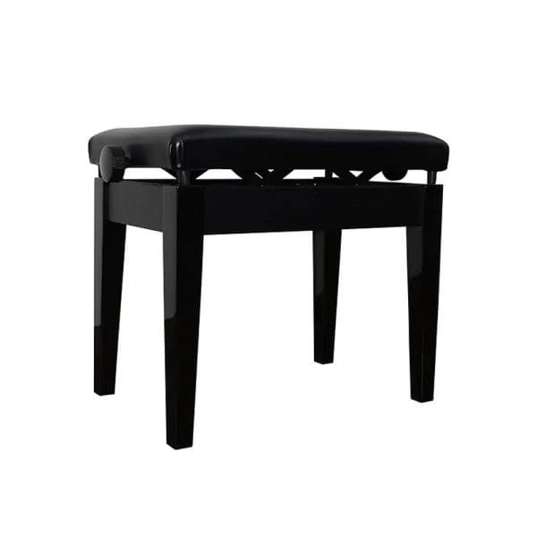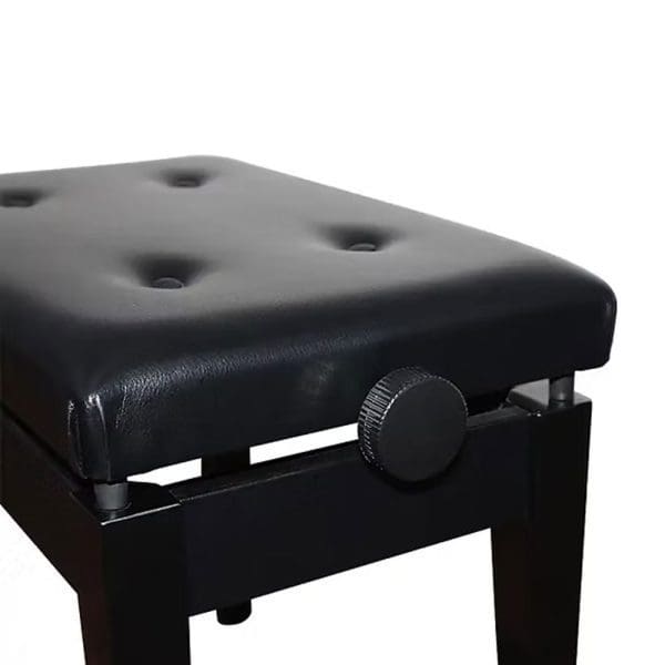 Este elegante asiento negro con ajuste de altura y cojín acolchado es perfecto para largas sesiones de práctica. Su estructura robusta y botones ergonómicos garantizan estabilidad y confort. Ideal para complementar cualquier piano clásico o digital.