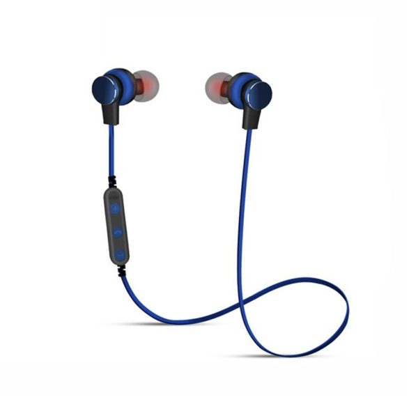 Audífonos de cuello ideales para deportes. Diseño con goma e imán, correa para el cuello, Bluetooth V4.0, rango de señal hasta 10 mts, duración de batería de 5 hrs, manos libres y controlador de volumen.