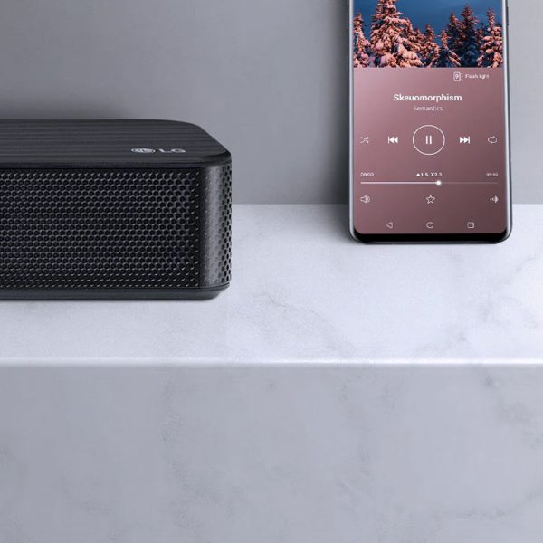 Transmite música inalámbricamente vía Bluetooth® desde tu dispositivo móvil a la Barra de Sonido LG SL4.