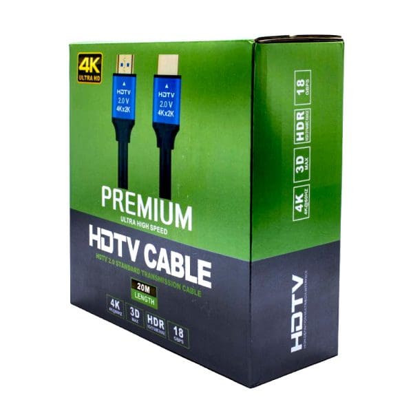 Cable HDMI 4K 20M Ultra High Speed Nitron: Disfruta de imágenes nítidas y sonido envolvente con este cable HDMI de 20 metros, compatible con 4K y 3D. Fabricado en cobre/CCS con conectores chapados en oro para una transmisión de alta calidad. Ideal para cine en casa, PS4 y proyectores.