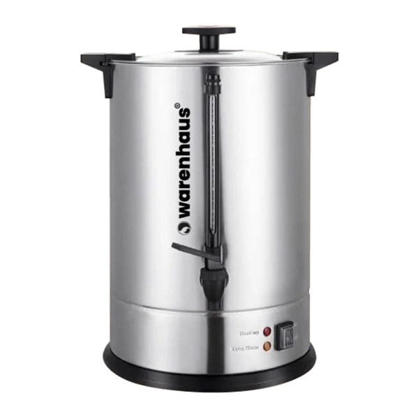 La cafetera Warenhaus CUS90-E, con una potencia de 950 watts y capacidad para 36 tazas, está fabricada en acero inoxidable de alta calidad. Cuenta con función automática para mantener el café caliente, filtro permanente, indicador de nivel de agua y asas resistentes al calor, ofreciendo durabilidad y comodidad