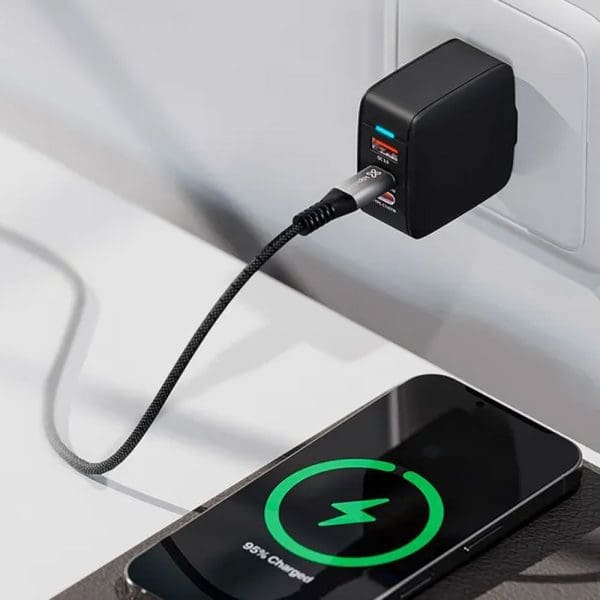 Incluye enchufes plegables y un tamaño reducido, lo que lo convierte en el compañero perfecto para viajes, oficina o uso diario.