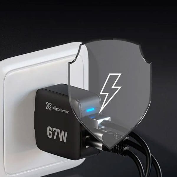 El PowerWall 67 KMC-500 de KlipXtreme es un cargador compacto y poderoso, diseñado para mantener todos tus dispositivos cargados con la máxima eficiencia. Equipado con tecnología GaN y las últimas innovaciones en carga rápida PD 3.0 y QC 3.0, ofrece hasta 67W de potencia para laptops, tablets, smartphones y más, en un diseño seguro, fresco y fácil de llevar a cualquier parte.