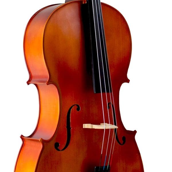 Cello CP101R para estudiantes y músicos en formación, con cuerpo de arce y tapa de pícea. Incluye arco y estuche con espuma de 10 mm para transporte seguro.