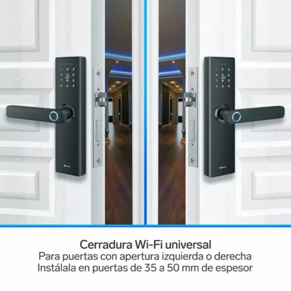 Un diseño minimalista es muy elegante; está fabricada en acero con acabado mate y molduras de plástico, e incorpora un teclado imperceptible a la vista que se ilumina solo al tocarlo para ingresar un código. Incluye todo lo necesario para instalarla en puertas de 35 a 50 mm de espesor, ya sea para apertura izquierda o derecha.