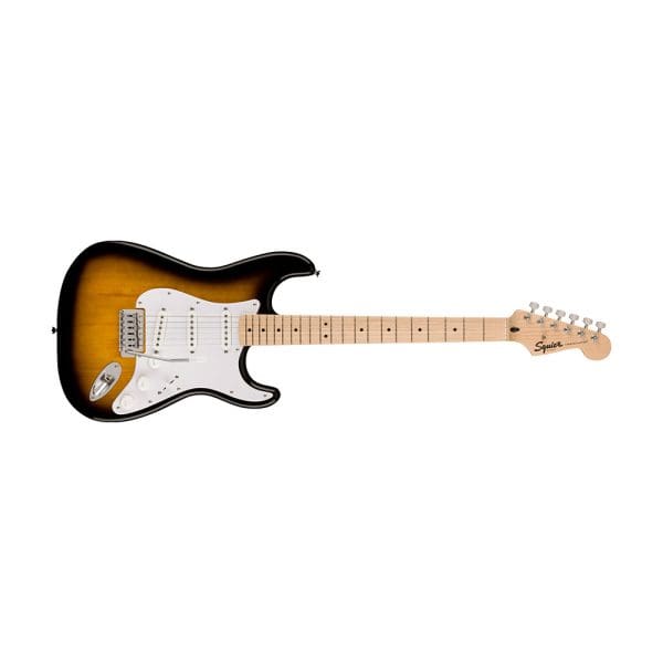 Esta guitarra eléctrica presenta el icónico diseño Stratocaster®, reconocido mundialmente por su estilo elegante, cuerpo contorneado y ergonomía que se adapta perfectamente al cuerpo del músico. Su acabado en resplandor solar de 2 colores le da un aspecto vintage y llamativo.