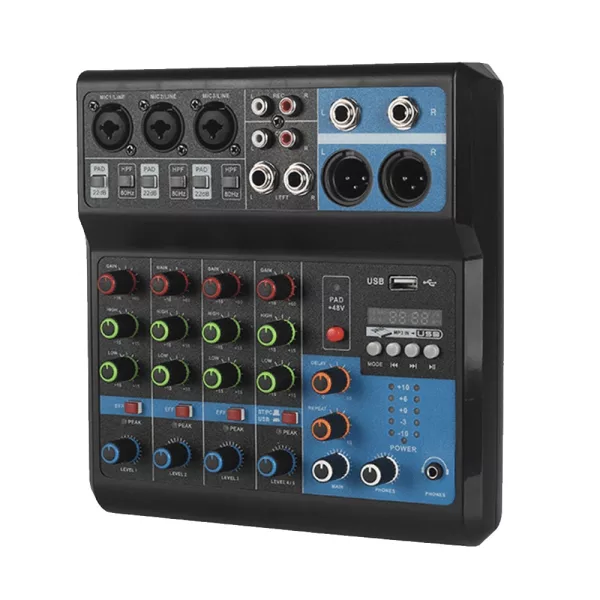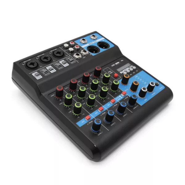 Consola de sonido de 5 canales, mezclador profesional para grabación de escenario en ordenador, tarjeta de sonido USB, equipo de DJ de tono alto y bajo