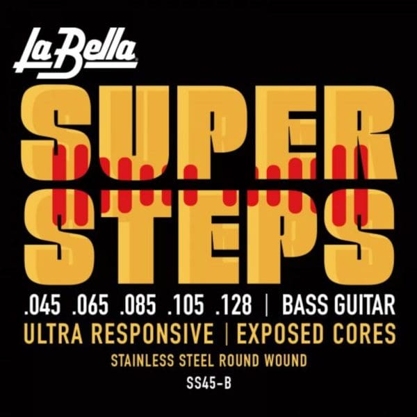 El juego La Bella SS45-B Super Steps está compuesto por cuerdas de acero inoxidable de herida redonda, lo que garantiza una durabilidad extrema y un sonido brillante y definido para el bajo eléctrico.
