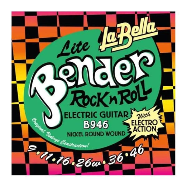 Las cuerdas La Bella B946 Lite Bender para guitarra eléctrica ofrecen un sonido vintage auténtico con excelente flexibilidad. Fabricadas con acero niquelado, son perfectas para estilos que requieren bending y un tono cálido