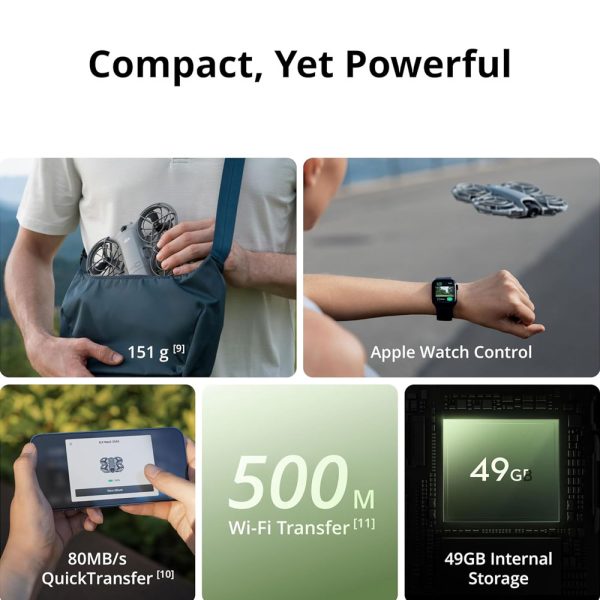 El DJI Neo 2 pesa apenas 151 gramos, lo que lo convierte en un dron extremadamente fácil de transportar. Su diseño compacto y plegable permite llevarlo en cualquier mochila o bolso para capturar momentos en viajes, reuniones o aventuras.