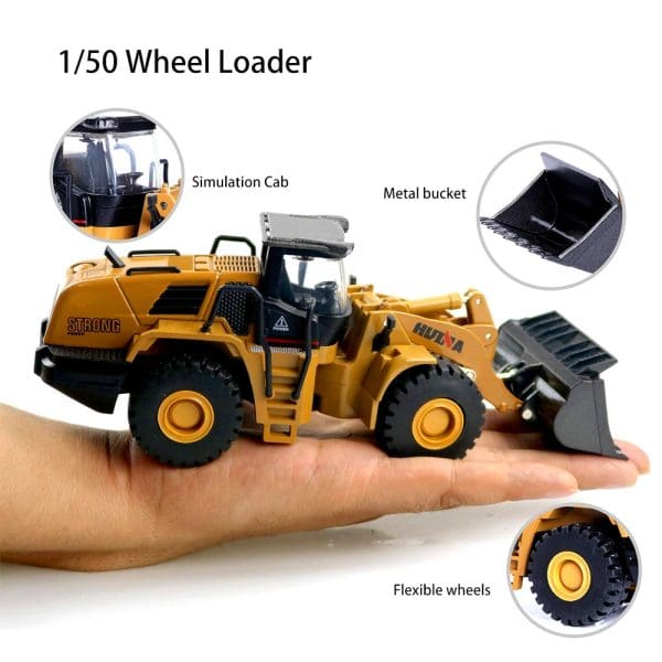 Conviértete en el rey del terreno con esta cargadora metálica a escala 1:40 de Huina Toys. Un modelo fundido a presión con acabados realistas, ideal para niños, coleccionistas y fanáticos de la maquinaria pesada. ¡Perfecto para exhibición o para recrear emocionantes escenas de construcción!