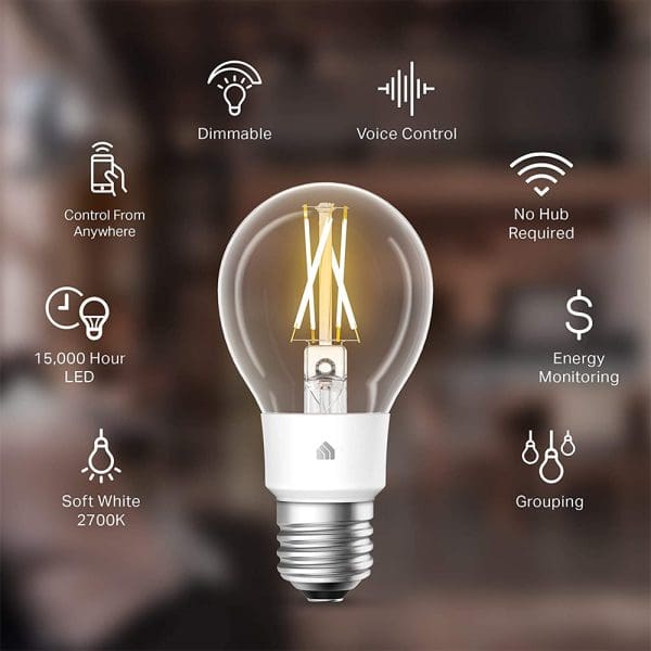 La bombilla de filamento LED Kasa tiene un amplio rango de atenuación que se puede controlar convenientemente con la aplicación Kasa Smart.