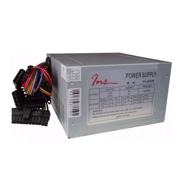 La fuente de poder INS/950W ofrece un rendimiento confiable con una salida de 950W, soportando un voltaje de 110-220 V y una frecuencia de 50-60 Hz. Ideal para equipos exigentes, incluye un cable de alimentación y opera con una corriente de 4-8 A, brindando una energía estable y eficiente para tus dispositivos