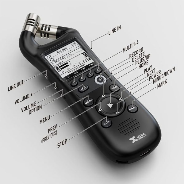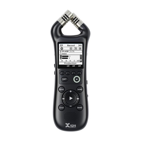 Grabadora estéreo portátil Xvive XV1-R con grabación flotante de 32 bits, micrófonos X/Y de alta calidad, muestreo hasta 96 kHz y función de micrófono USB. Ideal para músicos, podcasters, cineastas y creadores que buscan audio profesional en un formato compacto.