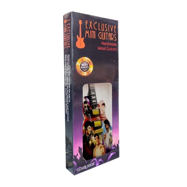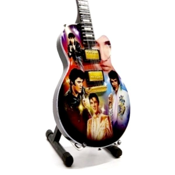 Esta mini guitarra rinde homenaje al Rey del Rock, Elvis Presley, capturando el estilo y la influencia que definió una era en la música.