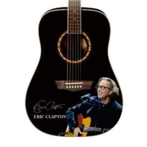 Esta mini guitarra rinde homenaje a Eric Clapton, uno de los guitarristas más influyentes de la historia, capturando su estilo único y su legado musical.