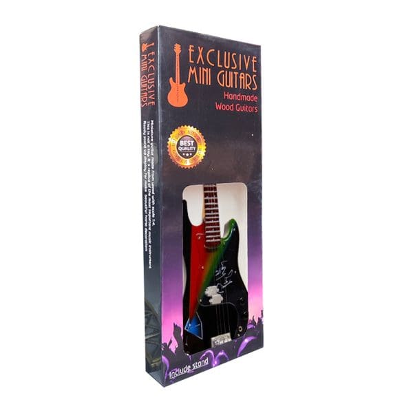 Fabricada con materiales duraderos y acabados detallados, esta mini guitarra es una representación fiel de los instrumentos icónicos utilizados por Pink Floyd.