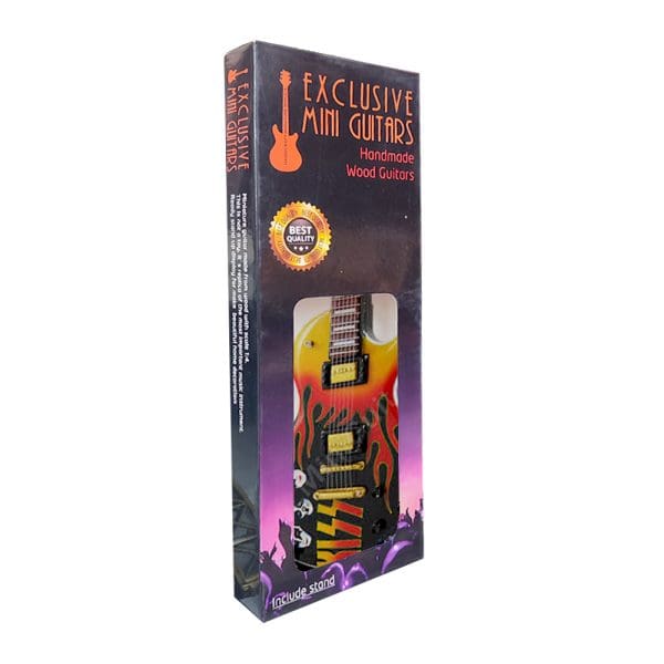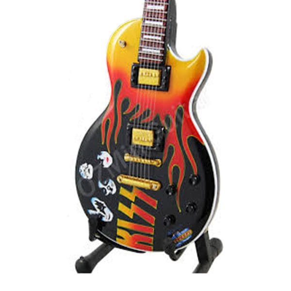 Esta mini guitarra rinde homenaje a KISS, la legendaria banda de rock, capturando su estilo único y su impacto en la música.