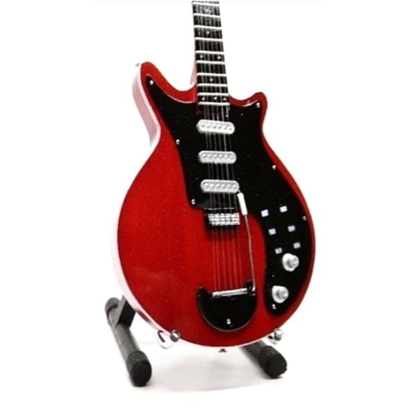 Fabricada con materiales duraderos y acabados detallados, esta mini guitarra es una representación fiel del icónico instrumento utilizado por Brian May.
