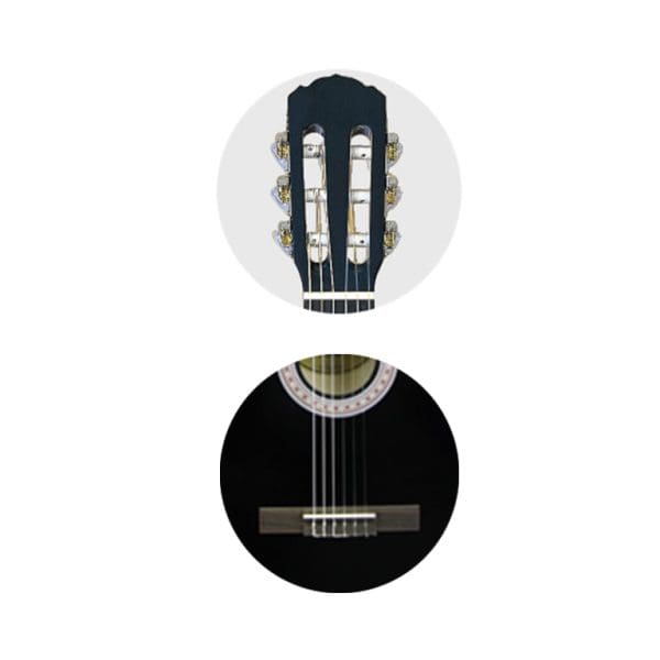 Cuerdas de nylon: Suaves y fáciles de tocar, perfectas para desarrollar técnicas de guitarra clásica.