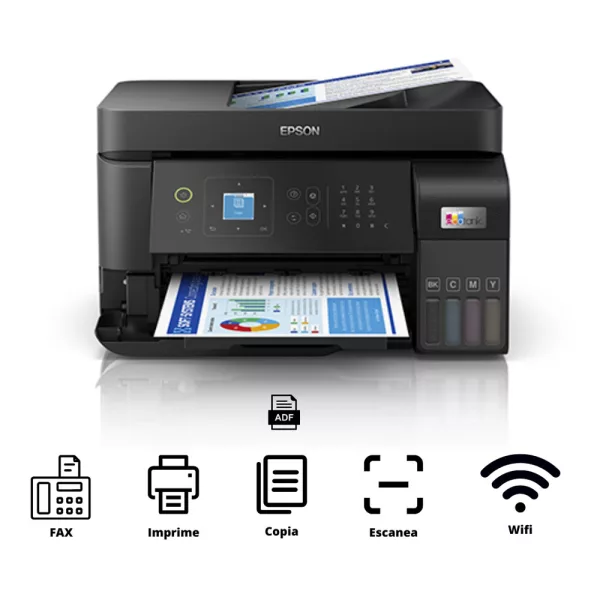 Conectividad versátil: La EcoTank L5590 está totalmente conectada, lo que significa que puede compartirse en cualquier red a través de Wi-Fi o Ethernet. Esta característica permite una fácil integración en entornos de trabajo compartidos, lo que facilita el acceso a la impresora desde múltiples dispositivos y ubicaciones