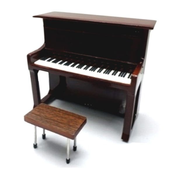 Este mini piano de acabado marrón captura la elegancia y sofisticación de los pianos verticales tradicionales, añadiendo un toque vintage a cualquier espacio.