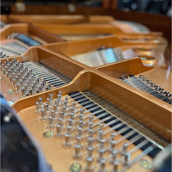 El marco de hierro fundido soporta la gran tensión de las cuerdas, garantizando estabilidad estructural y contribuyendo a mantener la afinación del instrumento.