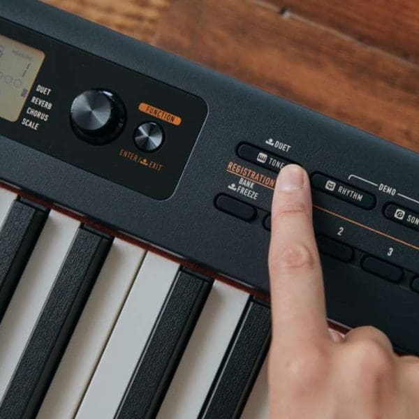 El mecanismo de teclado compacto ofrece una sensación cómoda al tocar el piano