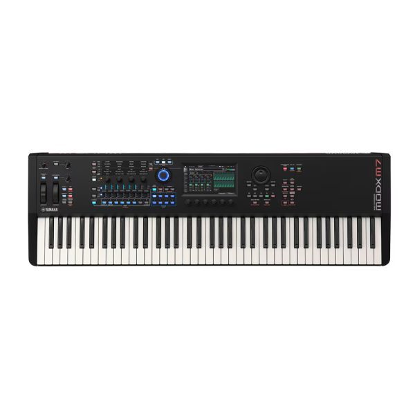 El Yamaha MODX M7 es un sintetizador profesional de 76 teclas que equilibra perfectamente una capacidad sonora masiva con un diseño ligero. Equipado con la potencia del ecosistema «M» (motores AN-X, AWM2 y FM-X), ofrece un rango extendido de notas para interpretaciones complejas y un flujo de trabajo optimizado para el escenario. Es la elección predilecta para el tecladista que necesita cubrir bajos, pads y leads simultáneamente con una calidad de audio de estudio en un formato compacto.