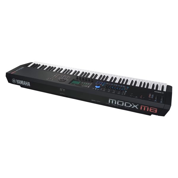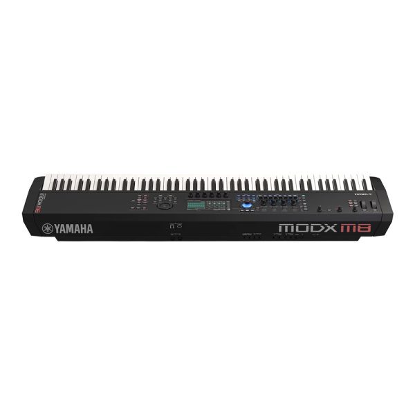 El MODX M8 cuenta con 88 teclas contrapesadas que imitan el tacto de un piano acústico: las teclas bajas son más pesadas y las agudas más ligeras. La gran novedad en esta serie es la inclusión de Aftertouch, permitiendo que los pianistas añadan modulación o efectos simplemente presionando la tecla con más fuerza después del impacto inicial.