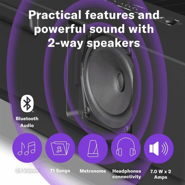 Perfecto para quien desea un piano realista pero no dispone del espacio para un piano vertical o de cola. Su tamaño facilita colocarlo en cualquier rincón.
