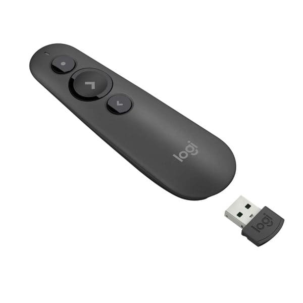 El Logitech R500s es un presentador inalámbrico diseñado para exposiciones fluidas y profesionales. Ofrece control sencillo de diapositivas, conectividad Bluetooth/USB y un láser rojo claro para señalar con precisión, ideal para aulas, conferencias y reuniones.