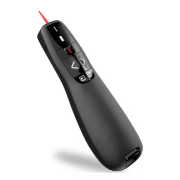 Incorpora un puntero láser rojo, que permite al presentador resaltar puntos importantes en la pantalla, facilitando la atención del público hacia áreas específicas de la presentación