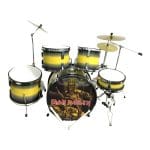 Incluye un set completo de batería de 5 piezas, además de un asiento y baquetas miniatura, replicando a la perfección los instrumentos de la banda.