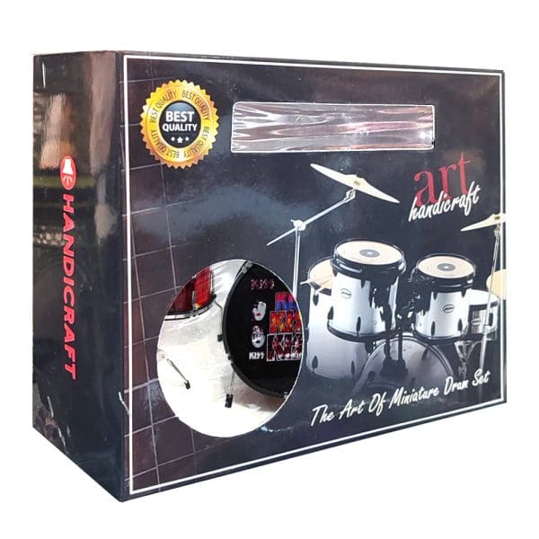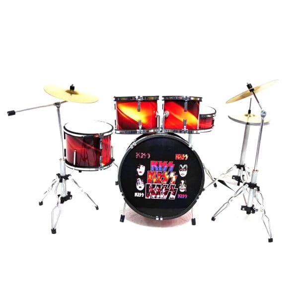 Esta mini batería rinde homenaje a KISS, capturando el estilo inconfundible de la legendaria banda de rock.