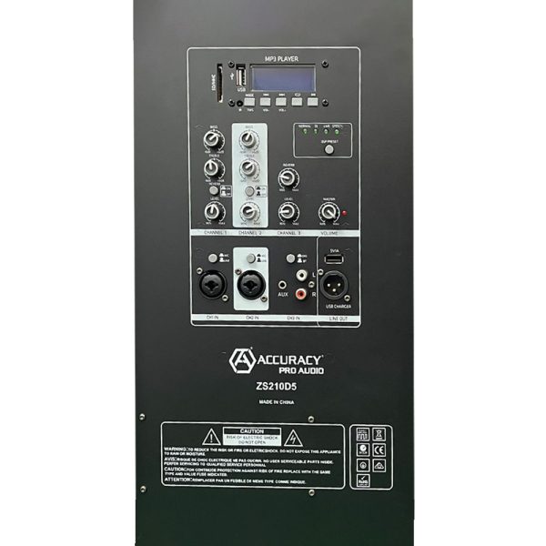 El ZS210D5 de Accuracy es un sistema de sonido portátil completo, con 2 parlantes de 8″, mezclador incorporado, amplificador clase D, y 1 micrófono con cable incluido. Diseñado para ofrecer potencia y practicidad, es ideal para eventos, reuniones, presentaciones o karaoke, todo con conexión directa a la corriente eléctrica.