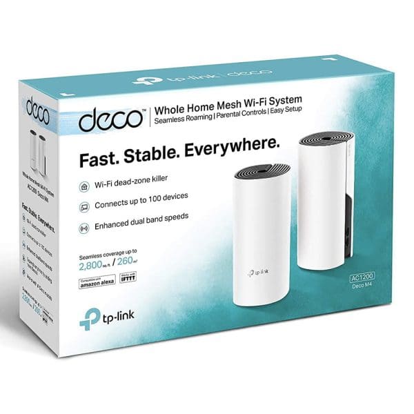 Deco M4 es la forma más sencilla de garantizar una señal Wi-Fi potente en todos los rincones de su hogar hasta 2800 pies cuadrados; 260 m2. Las conexiones inalámbricas y el backhaul Ethernet opcional funcionan juntos para vincular las unidades Deco, proporcionando velocidades de red aún más rápidas y una cobertura verdaderamente perfecta.