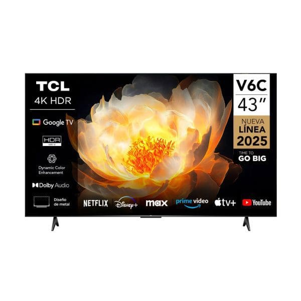 Disfruta de colores más vivos, resolución impresionante y acceso inteligente a tus apps favoritas con el TCL 43V6C. Su pantalla 4K UHD de 43”, tecnología HDR10+ y sistema Google TV hacen de este televisor la opción perfecta para tu sala o dormitorio. Todo en un diseño moderno, delgado y elegante.