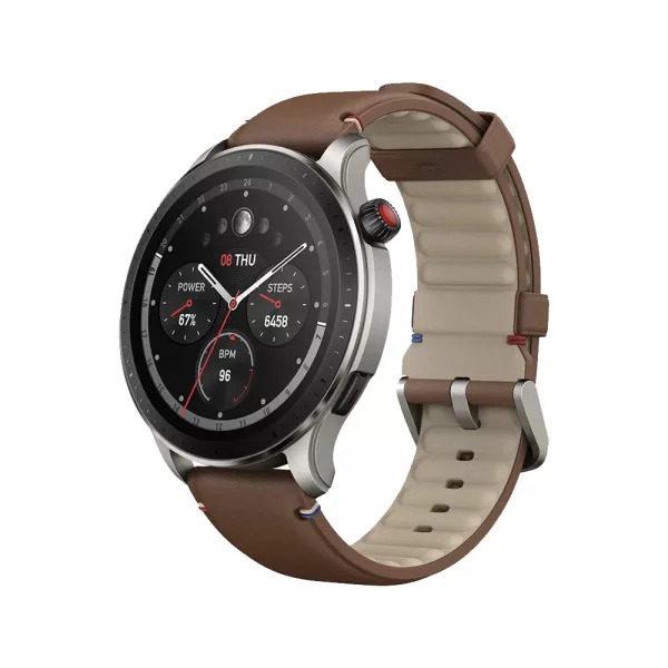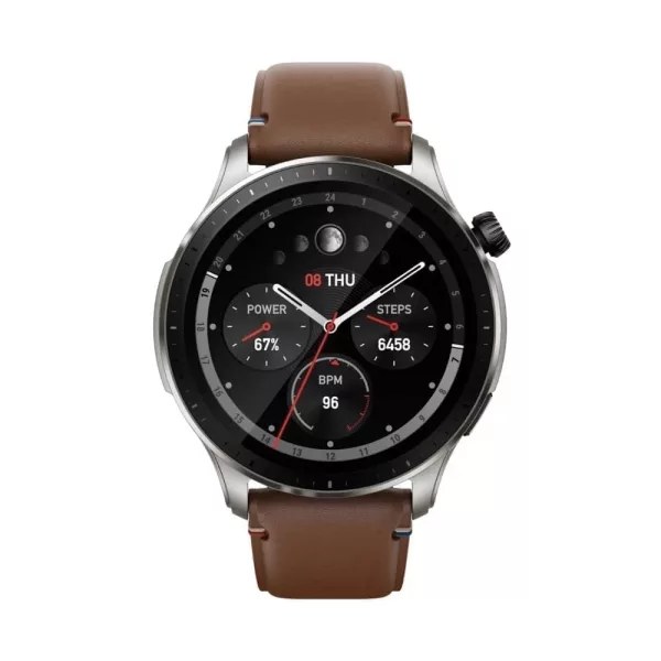 Amazfit GTR 4 es el primer reloj inteligente de la industria con tecnología antirreflejos en la cubierta del bisel de cristal, y la gran pantalla AMOLED de 1.43 pulgadas tiene un revestimiento antihuellas para mantener tu reloj con un aspecto impecable. La combinación de un marco medio de aleación de aluminio de una sola pieza y corona de navegación clásica de acero inoxidable hace que el reloj sea una fusión de moda de vintage y elegancia