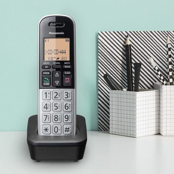 El teléfono inalámbrico compacto Panasonic KX-TGB812S con 2 teléfonos es un sistema de teléfono esencial para cualquier hogar. El pequeño cuerpo de cada auricular (3.4 pulgadas de alto x 2.9 pulgadas de ancho x 2.2 pulgadas de profundidad) se adapta a cualquier lugar, e incluso la base se puede montar en la pared para una máxima comodidad. Su teclado intuitivo y la pantalla LCD retroiluminada aseguran que puedas ver y completar cada llamada con confianza. A pesar de su pequeño tamaño, el teléfono es increíblemente potente, con identificador de llamadas, bloqueo, agenda telefónica, remarcación y marcación rápida, las funciones que necesitas al alcance de tu mano. El modo de alimentación de línea mantiene este teléfono funcionando incluso durante apagones temporales. Potente duración diaria de la batería de larga duración proporciona 180 horas en espera y 9 horas en conversación. La tecnología DECT 6.0 garantiza la claridad de cada llamada incluso cuando el teléfono está en una parte diferente de la casa a la base del teléfono.