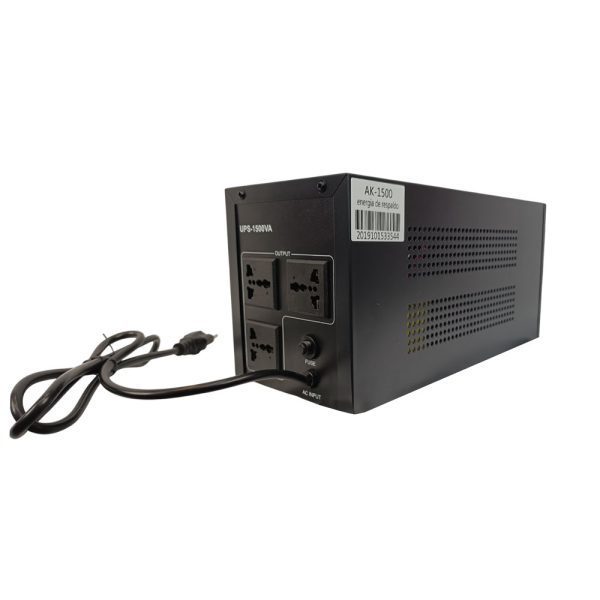 El AK-1500 UPS ofrece una protección eficiente contra cortes de energía y fluctuaciones de voltaje. Con 900W de potencia y una pantalla digital, permite monitorear el estado del sistema en tiempo real, garantizando la continuidad y seguridad de tus dispositivos electrónicos