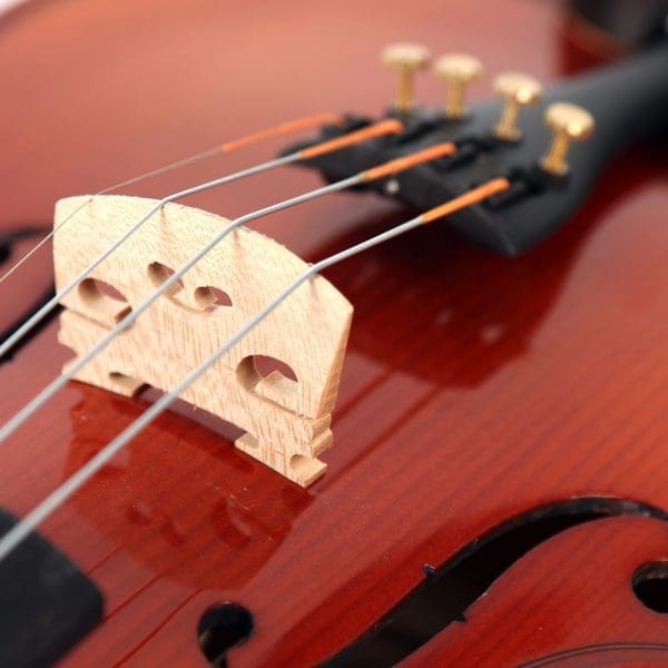 Incluye un arco octagonal de ébano y cuerdas con núcleo de nailon y acero de alta resistencia, ideales para un sonido cálido y potente. Es un violín profesional pensado para músicos avanzados o en formación intensiva.