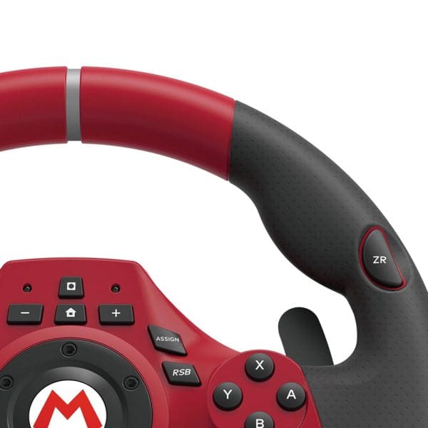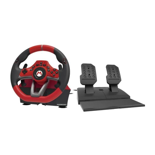 El Mario Kart Racing Wheel Pro Deluxe de HORI para Nintendo Switch es un volante ergonómico y de mayor tamaño, diseñado para ofrecer una experiencia de conducción realista en Mario Kart y otros juegos de carreras. Con paletas de cambio, controles integrados y un sistema de pedales, es el accesorio perfecto para los amantes de la simulación. Además, cuenta con licencia oficial de Nintendo y se conecta fácilmente mediante USB