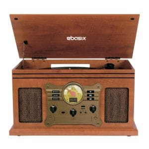 La Vitrola TE007 8 en 1 de Ebasix combina el encanto vintage con características modernas. Con capacidad para reproducir vinilos, CDs, cassettes, radio AM/FM y música desde dispositivos USB, SD y Bluetooth, ofrece una amplia variedad de opciones de entretenimiento en un diseño compacto y fácil de usar